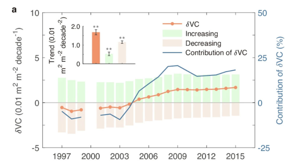 Wang, D., Ziegler, A. D., Holden, J., Spracklen, D. V., Ciais, P., Peng, L., & Zeng, Z., 2025. Vegetation cover change as a growing driver of global leaf area index dynamics. Nature Communications, 16, 9259. https://doi.org/10.1038/s41467-025-64305-1